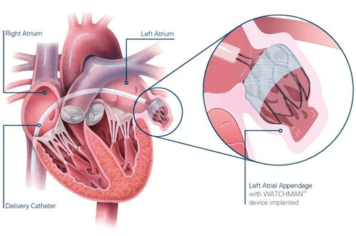 2.左心耳封堵術:對于不能口服或不愿意長期服用抗凝藥的栓塞高危房顫患者,左心耳封堵術是不錯的選擇,可以說是“一勞永逸”,但需要專科醫生評價才能進行的。