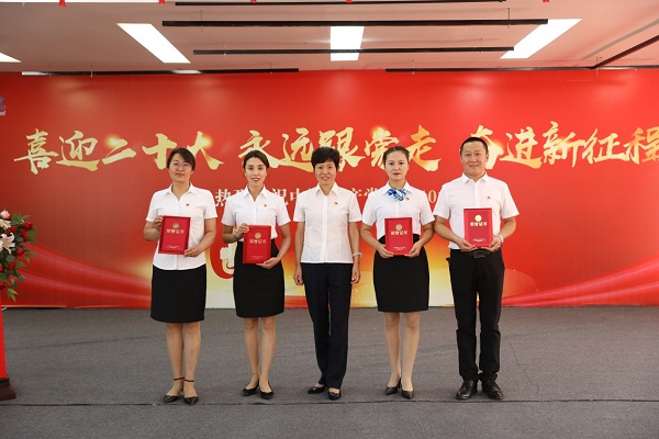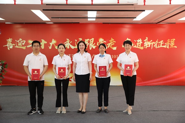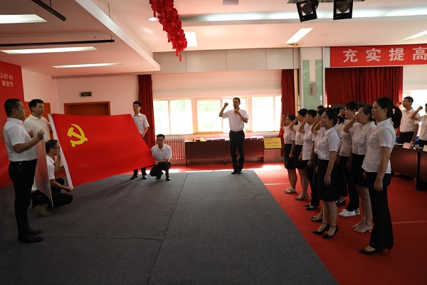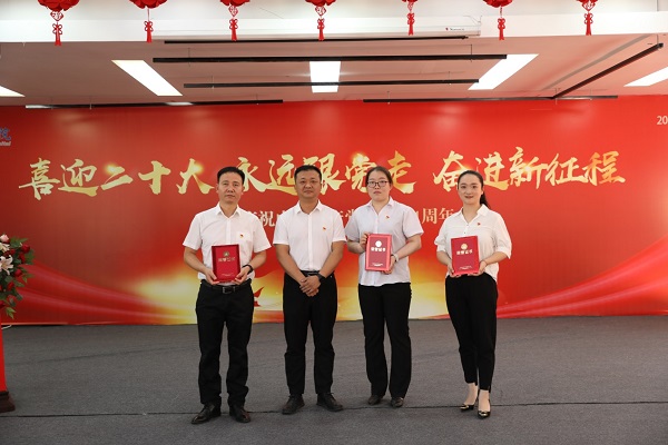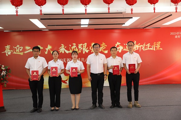 慶祝暨表彰大會在激昂國歌中拉開帷幕。黨委委員、工會主席沙寧同志帶領新入黨同志和黨員代表面向黨旗宣讀重溫了入黨誓詞。簡短、莊重的宣誓儀式讓每一位黨員的心靈又一次經歷了洗禮和升華,也時刻提醒著每一位黨員牢記自己共產黨員的身份,要永葆初心使命,為共產主義奮斗終身。