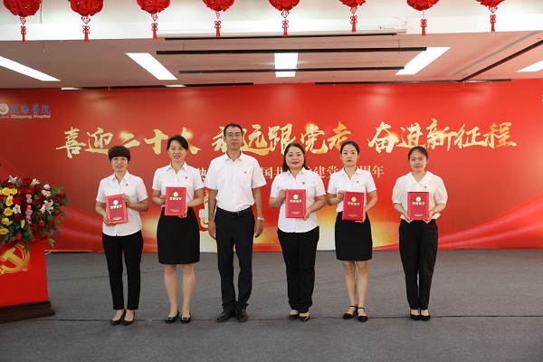 黨委書記姚曉峰同志在講話中簡要回顧了建黨101年和建院73年以來的發展成果,總結了過去一年醫院黨建工作的成績,并就未來黨建工作提出了希望和要求。黨委書記姚曉峰同志號召全院黨員干部不忘初心、牢記使命,充分發揮黨組織戰斗堡壘作用和黨員先鋒模范作用,轉變工作作風,強化擔當意識,真抓實干,開拓創新,奮發進取,為我院高質量發展注入強大的紅色動力!他強調,今年是黨的二十大召開之年,也是醫院實施“十四五”規劃的關鍵之年,全院干部職工要緊緊圍繞集團公司下達的目標任務和醫院中心工作,以建設高水平的三級甲等綜合醫院為目標,眾志成城,砥礪奮進,以實際行動和優異成績迎接黨的二十大勝利召開!