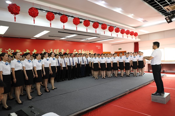 最后,由124名職工組成的合唱團演唱了精誠醫療集團醫院院歌《心愿》《鐵道兵志在四方》《再唱山歌給黨聽》三首曲目,為建黨101周年獻禮!