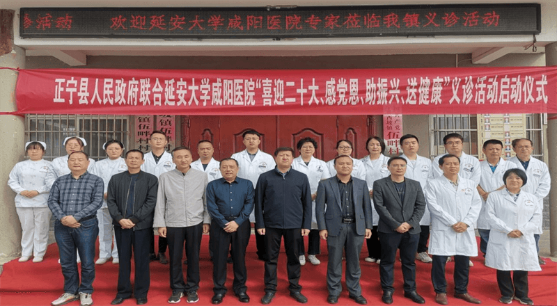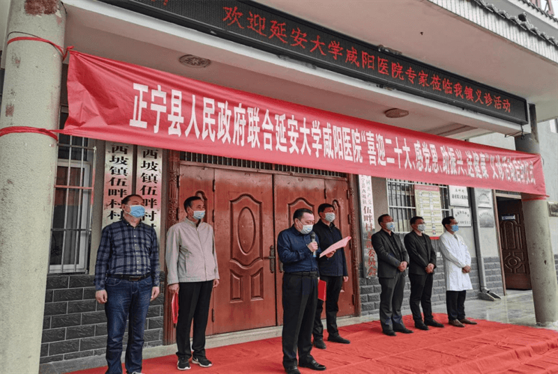 為全面貫徹落實鄉村振興戰略,同時為進一步推動黨史學習教育,落實“服務百姓健康、助力鄉村振興”的工作要求,聚焦“我為群眾辦實事”,踐行為民服務宗旨,9月14日至15日,延安大學咸陽醫院赴正寧縣西坡鎮伍畔村舉行“喜迎二十大、感黨恩、助振興、送健康”大型義診活動。參加此次義診的有正寧縣人民政府黨組成員、副縣長白東懷,正寧縣醫療保障局黨組書記、局長何志杰,正寧縣衛生健康局副局長楊海玉,正寧縣醫療保障局副局長李博,正寧縣西坡鎮人民政府辦公室主任劉博,精誠醫療集團董事局主席、延安大學咸陽醫院董事長李衛軍、流動醫院行政副院長張軍強、流動醫院業務副院長王梅芳、宣傳部慶陽辦事處副主任馬登科和相關村干部及群眾400余人。