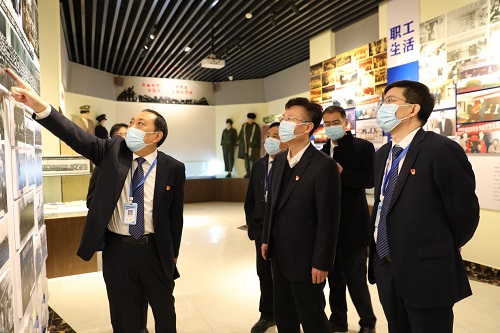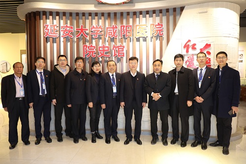 李勝義副書記等領導在李衛軍董事長陪同下參觀了咸陽市愛國主義教育基地——院史館、科教樓學生宿舍、職工活動中心等。參觀過程中李董事長就醫院發展歷史、科研教學情況、重點學科建設、人才隊伍培養等方面做了簡要介紹。