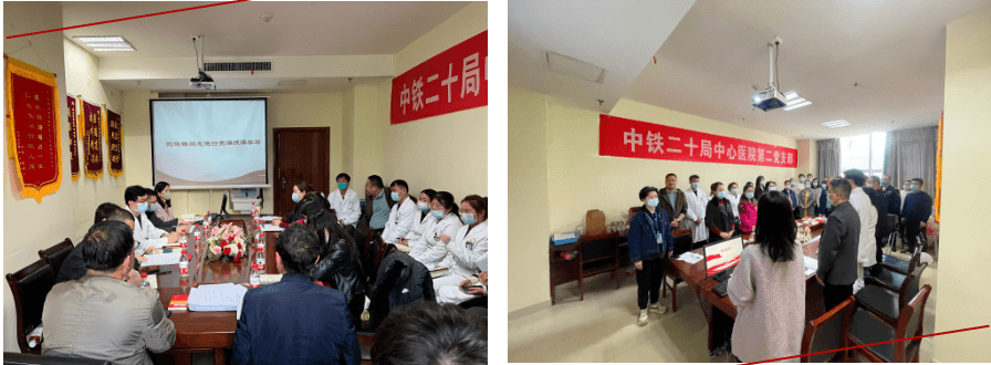 2023年3月14日下午,中鐵二十局集團有限公司中心醫院第二黨支部在超聲醫學科示教室召開組織生活會并開展民主評議黨員活動。參加會議的有黨委委員、院長助理劉連鋒,支部書記張軍強及全體支委、黨小組長和黨員,黨委委員、院長助理劉連鋒以普通黨員身份參加,會議由支部委員王英莉同志主持,支部黨員應到58名,實到53名。