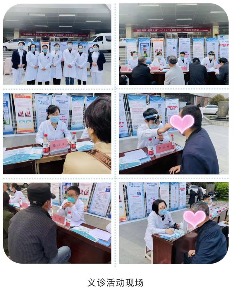 今年世界睡眠日主題為“健康睡眠 健康之源”,3月21日上午由我院神經內科十一病區、耳鼻咽喉科、精神科的科主任和神經內科十一病區護士長及相關醫護人員組成專家團隊在腦血管大樓門前開展大型公益義診活動。科室還拍攝了“科普短視頻”、舉辦睡眠健康沙龍講座等。主要普及睡眠對健康的重要性,提高醫務人員及廣大人民群眾的睡眠問題的關注,強調關注睡眠問題對健康的意義,提示全社會關注睡眠,提高睡眠質量和健康水平。