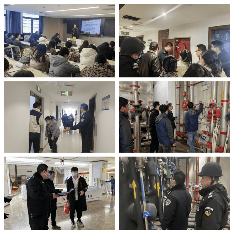 消防安全方面,消防科積極協調各分院綜合辦、消防維保單位和專業安裝公司、保衛科、保障部水電班組分別對心臟大樓、外科大樓、內科大樓及院內各建筑進行消防設施設備和火災報警聯動測試;摸底排查,及時消除隱患;順利迎接并通過近期省市區各級部門多次消防安全檢查。
