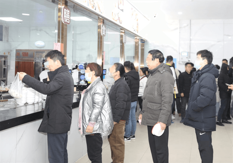 凌晨4:00,當大多數人還在甜美的夢鄉中時,醫院餐廳的工作人員已經忙碌起來,他們正在為在院的2000多名患者和醫護人員準備新年第一餐。6:30,營養餐廳已經排起了隊,患者及家屬紛紛帶著餐具和醫院發放的免費餐券來到窗口領取餃子。
