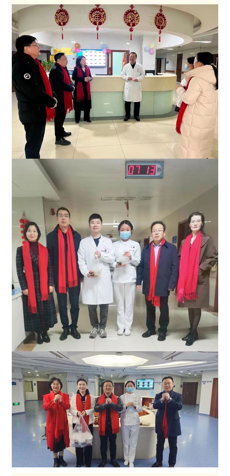 “新年快樂!”“大家辛苦了!”在給大家送上新年祝福的同時,院領導向堅守一線的醫護人員表示感謝,并囑托大家一定抓好質量和安全,為患者做好診療服務。醫護人員紛紛表示,“請領導放心,我們一定不辱使命”。