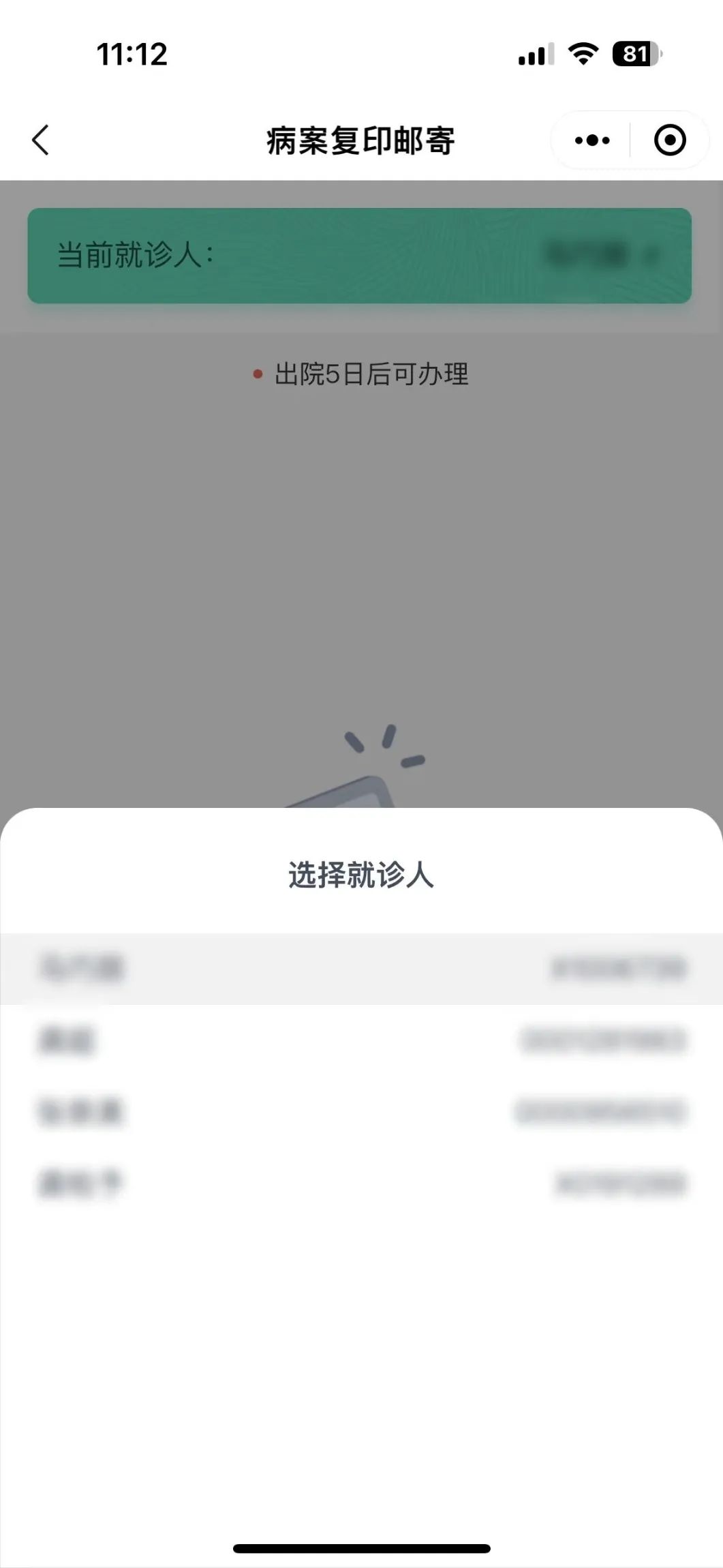 第3步:選擇【當前就診人】,點擊【可辦理】。
