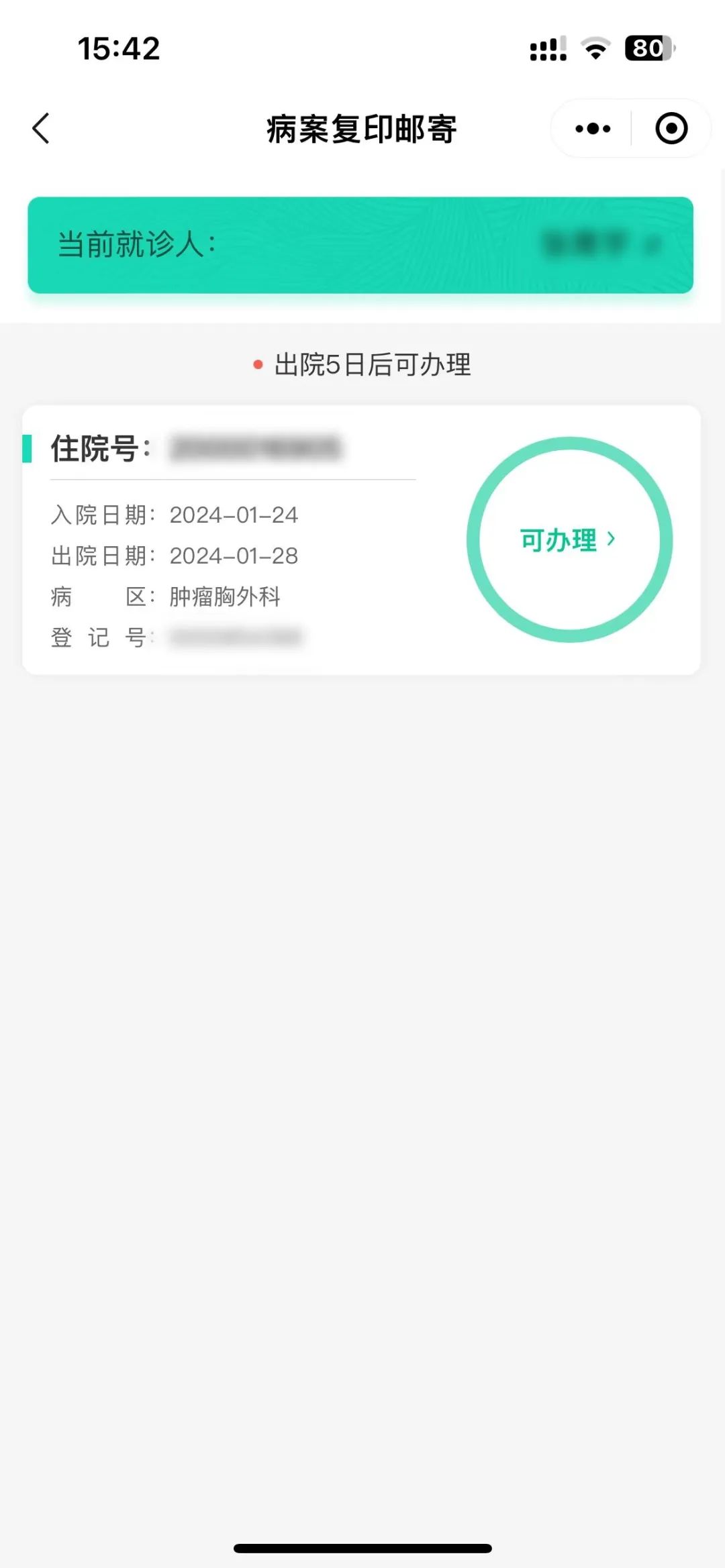 辦理時限:患者辦理出院手續后5個工作日。