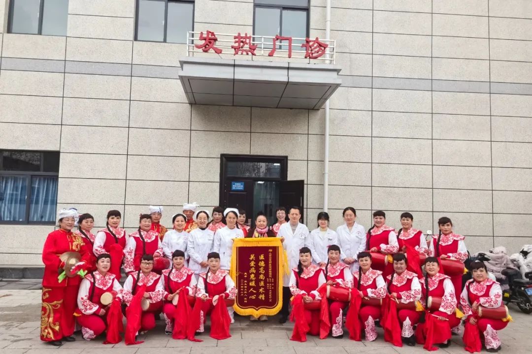 2024年3月1日上午10時,我院東門出現鑼鼓喧天,秧歌扭起的景象。原來是感染性疾病科患者家屬帶錦旗及秧歌鑼鼓隊送來真摯的感謝。仔細端詳,錦旗正中央印著兩行金色大字“醫德高尚醫術精,關愛病患暖人心”。