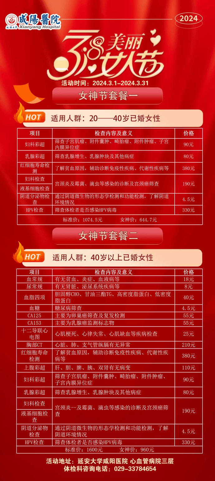 今年3.8收好健康錦囊,延安大學咸陽醫(yī)院體檢科特為廣大女性同胞準備了超值體檢優(yōu)惠。