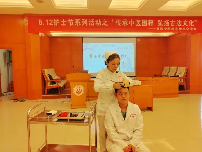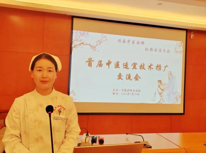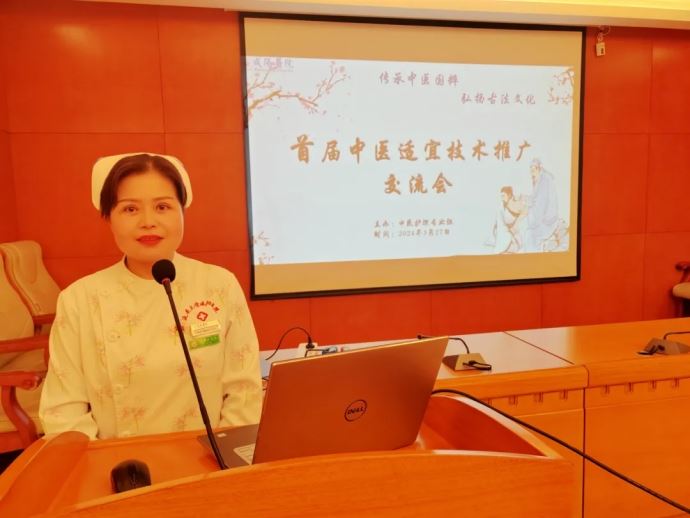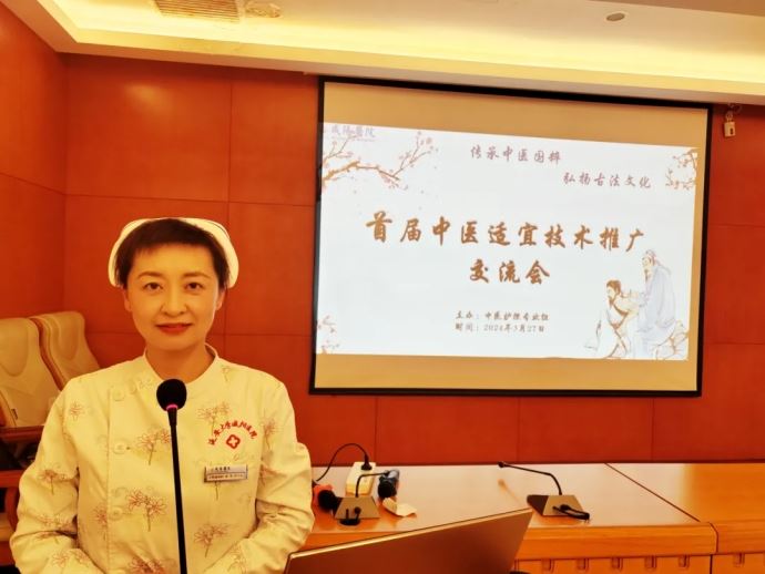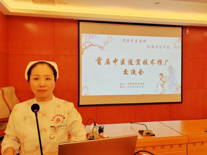 為響應國家關于《進一步改善護理服務行動計劃(2023-2025年)》文件號召,滿足人民群眾的健康需求,發揮中醫護理特色與優勢,推廣中醫適宜技術,培養中醫護理專業人才。2024年3月27日下午14時,以“傳承中醫國粹  弘揚古法文化”為主題的首屆中醫適宜技術交流會在我院心臟樓第一學術廳舉辦。臨床護理專業委員會秘書呂婷護士長、中醫護理專業組組長董朝妮及組員、各臨床護士共60余人參加了此次交流會,會議由中醫護理專業組秘書主管護師方丹主持。