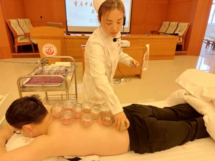 “明其道、觀其妙、精其術”,在細致的理論講解后,由專業組主管護師張絨、劉薇、雷靜分別對平衡火罐、巨灸罐、穴位貼敷及頭部刮痧四項技術進行操作展示。三位老師用通俗易懂的語言、簡潔明了的示范,展示了中醫適宜技術的操作方法和技術要點,深化了大家對中醫適宜技術基礎及臨床應用的認識。