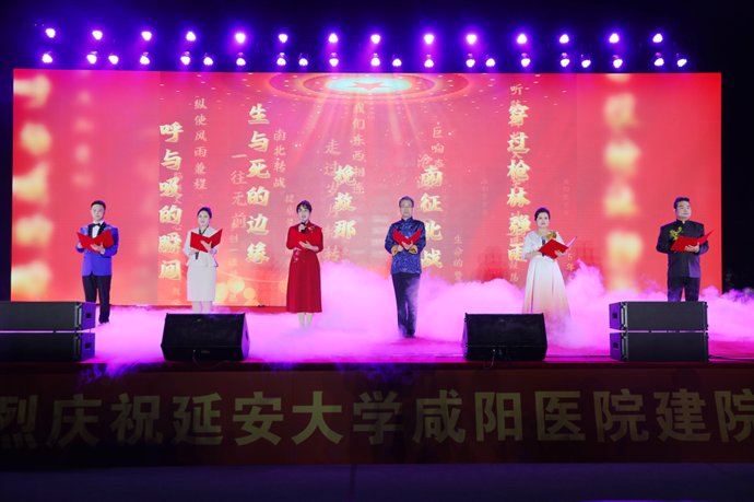 下午19:30,在萬眾期待中,延安大學咸陽醫院75周年慶典晚會在醫院內西側廣場如約舉行,75周年慶典大會與會人員、院內職工、在院患者及周邊群眾兩千余人現場觀看了演出。晚會開始前,精誠醫療集團主席兼延安大學咸陽醫院董事長李衛軍做了題為《七十五載鑄輝煌 共譜華章展未來》的晚會致辭。他強調醫院要在新的歷史起點上,堅持改革創新,拓寬發展思路,為建設“百年名院 醫界豐碑”而努力奮斗。堅持以人民健康為中心的發展理念,加強學科建設,提升診療水平和質量,推動醫院各項事業再上新臺階。要繼續發揚優良傳統和作風,努力將醫院建設成為一所社會認可,政府放心,患者滿意,職工自豪的高水平三級甲等大學附屬醫院。