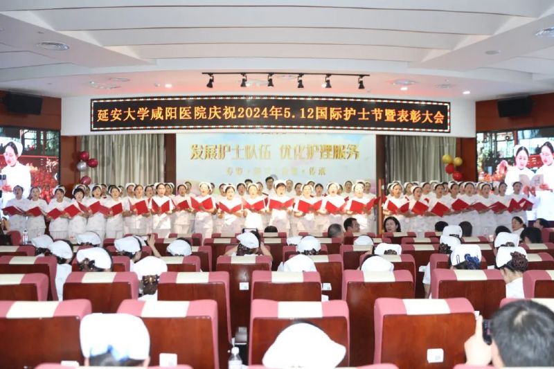 暮春醉五月,雨露潤芳菲。2024年5月9日14時,延安大學咸陽醫院在腦血管病院第三學術廳隆重舉行主題為“專業? 擔當?價值?傳承”的第113個國際護士節慶祝活動暨表彰大會。精誠醫療集團董事局主席兼延安大學咸陽醫院董事長李衛軍、延安大學咸陽醫院院長姚曉峰及院領導班子成員、各職能部門負責人、全院護士長及受表彰的優秀護士、優質護理服務先進個人、優秀帶教老師及護士代表共計360余人參會。退休護理專家李青、吳麗萍受邀參會。