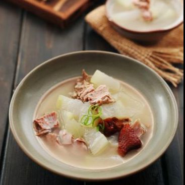 原料:冬瓜1000克、水鴨1/2只、薏米100克、陳皮1/4個(gè)、生姜3片、鹽適量。