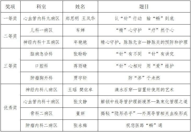 附:第五屆外周靜脈輸液治療護理創新案例演講比賽獲獎名單