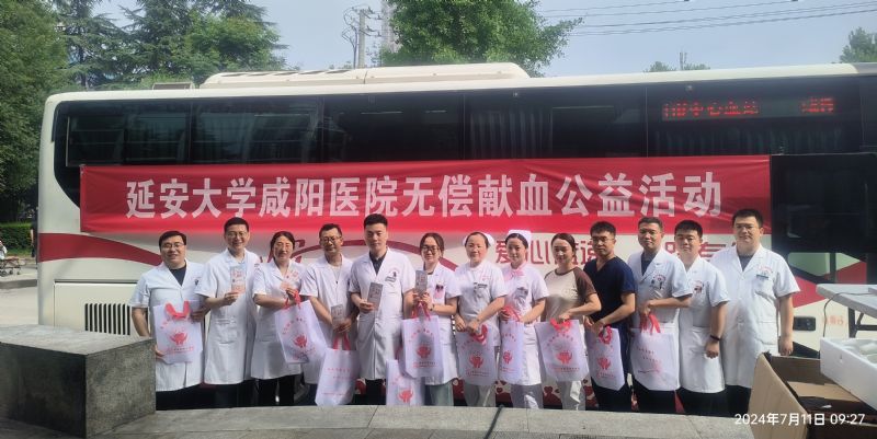 為緩解本市血源緊張狀態,保障社會用血需求,根據咸陽市衛健委和咸陽市中心血站在全市范圍內開展無償獻血活動的文件精神,我院積極響應號召,于2024年7月11日在內科樓前組織開展了全院職工開展無償獻血公益活動。