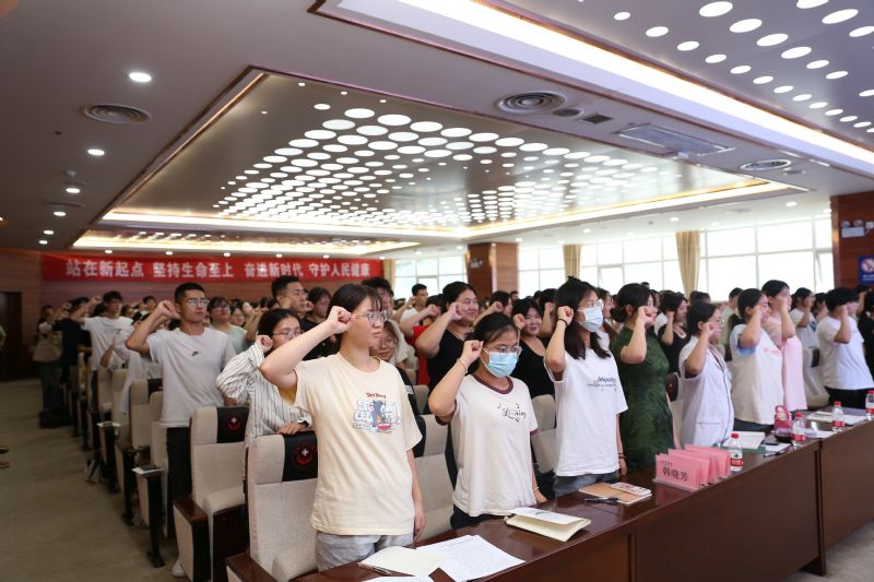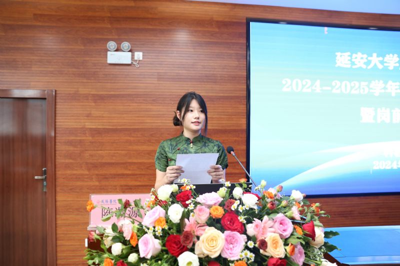 隨后,學生代表陳凘源進行發言并帶領全體實習生進行醫學生宣誓。她說:“在即將開始的實習中,我們將面對真實的患者,他們帶著病痛以及對健康的渴望來到我們面前。每一個病例都是一個挑戰,每一次診斷都是一次考驗。我們要以扎實的醫學理論為基礎,嚴謹的科學態度為準則,細心觀察、認真分析,努力早日為患者解決病痛的折磨。”