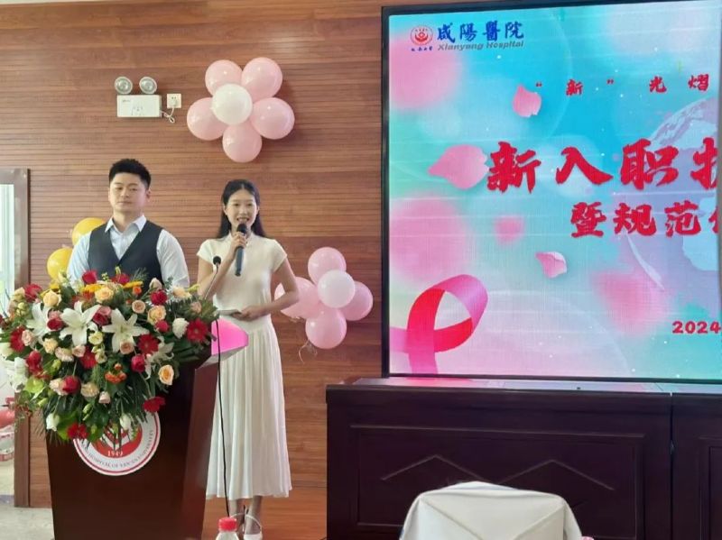 為使新入職護士盡快適應新環境及新角色,樹立正確的人生觀及職業觀,增強職業認同感和歸屬感。延安大學咸陽醫院于8月13日下午在外科病院第四學術廳隆重舉行2024年新入職護士歡迎會暨規范化培訓開班儀式。延安大學咸陽醫院院長助理兼護理部主任楊敏、護理人員繼續教育管理委員會主任委員、外科病院邢娟娟總護士長、心血管病院黨文婷總護士長、腦血管病院宋春蘭總護士長、內科病院徐金強總護士長及全體護士長、護士代表等歡聚一堂,共同歡迎180位同事。迎新會由急診科馮凱和消化內科二病區程雨妍主持。