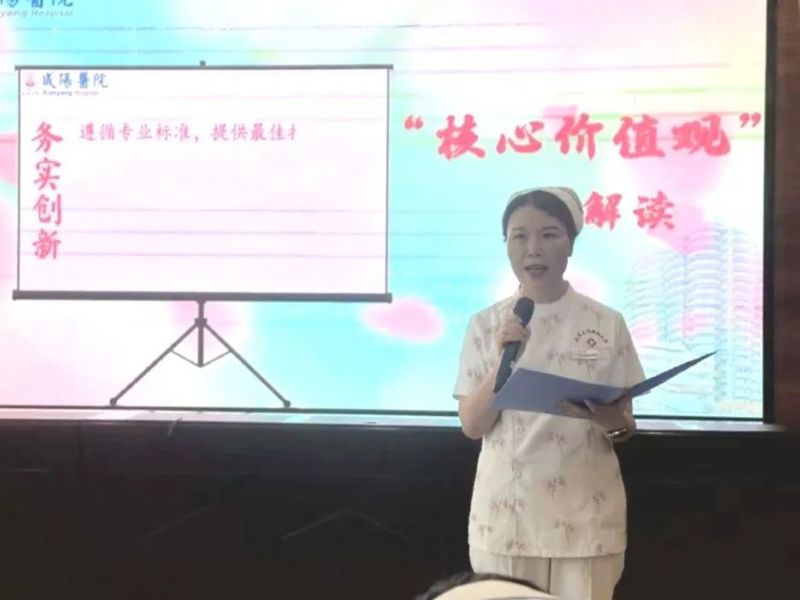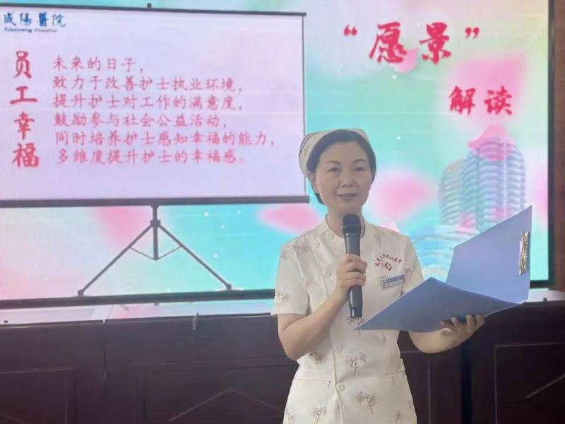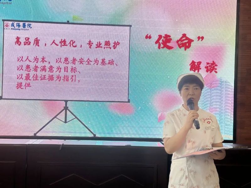 四位總護士長詮釋了延安大學咸陽醫院“護理團隊愿景、使命、核心價值觀”。引導大家以患者為先,同理心、愛心為輔,提供高品質人性化的專業照護,秉承尊重關愛、精誠合作、敬業愛崗、務實創新的核心價值觀,為實現建設患者信賴、員工幸福、區域一流護理團隊的愿景而共同努力。