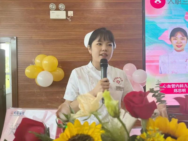 心血管內科九病區護士鄭思明作為護士代表分享工作感悟,從一個懵懂無知的畢業生,成長為一個可以獨當一面的戰士。工作中要不斷地學習、成長、進步。要有一顆愛心、感恩的心、進取的心,努力去展示自己;要堅守職業初心,做一個有知識、有能力、有溫度、有情懷、有價值的護理人。