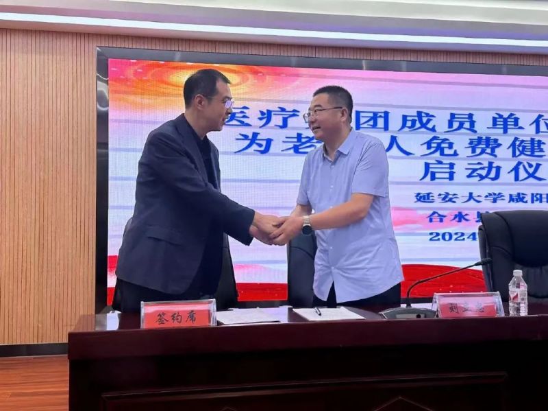 本次會議由合水縣衛生健康局薛永成局長主持,縣政府副縣長馮寶山致歡迎詞。我院行政副院長沙寧與合水縣中醫醫院黨委副書記、院長劉立忠簽訂《延安大學咸陽醫院與合水縣縣中醫醫院建立醫療聯合體合作框架協議》并為醫聯體揭牌。