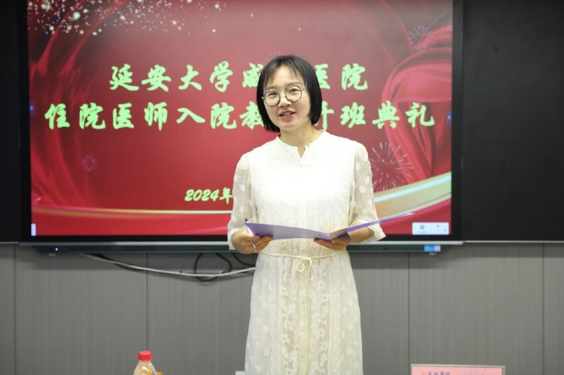 8月24日,由延安大學(xué)咸陽(yáng)醫(yī)院住培辦公室主辦的2024級(jí)住院醫(yī)師規(guī)范化培訓(xùn)入院教育開(kāi)班儀式在教學(xué)樓七樓成功舉辦。住院醫(yī)師規(guī)范化培訓(xùn)作為醫(yī)學(xué)教育的重要組成部分,是醫(yī)學(xué)生完成院校教育后,接受以提高臨床技能為主的系統(tǒng)化、規(guī)范化的教育階段,是我們醫(yī)學(xué)生成長(zhǎng)為合格臨床醫(yī)師的必經(jīng)之路。本次活動(dòng),邀請(qǐng)了延安大學(xué)咸陽(yáng)醫(yī)院內(nèi)科病院院長(zhǎng)張玉河、外科專(zhuān)業(yè)基地主任強(qiáng)永春,內(nèi)科專(zhuān)業(yè)基地主任張榮、內(nèi)科專(zhuān)業(yè)基地教學(xué)主任殷國(guó)慶,全科專(zhuān)業(yè)基地教學(xué)主任劉媛媛、神經(jīng)內(nèi)科專(zhuān)業(yè)基地教學(xué)秘書(shū)王颯出席,開(kāi)班典禮由科研教學(xué)管理中心副主任陳青主持,專(zhuān)業(yè)基地管理人員、住培辦管理人員與2024級(jí)全科、神經(jīng)內(nèi)科、內(nèi)科、外科專(zhuān)業(yè)住院醫(yī)師參加了此次會(huì)議。
