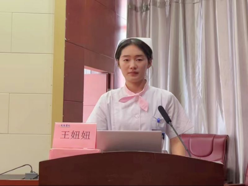 活動第二項,實習生代表王妞妞分享了她的實習心得與收獲,她堅定地表示,將秉持著積極向上的精神風貌、滿腔的熱情與樂觀的心態,全身心地投入到臨床實習的每一個環節中。同時,她承諾將嚴格遵守各項規章制度及操作規范,確保患者及自身的安全。