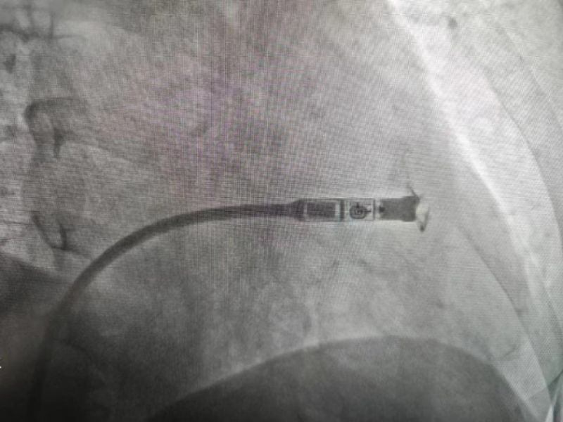 國慶前夕,延安大學咸陽醫院心血管內科五病區成功完成了一例Micra雙腔無導線起搏器的植入術,這是延安大學咸陽醫院在實施首例單腔無導線起搏器后,再次完成首例雙腔無導線起搏器(Micra)的植入手術,也是咸陽市首例雙腔無導線起搏器植入術。此次接受Micra無導線起搏器是延安大學咸陽醫院心血管內科五病區患者何大爺(化名),患者15天前出現心悸、氣短,伴短暫性意識障礙,當地醫院診斷“急性腦梗死”,因錯過最佳溶栓及取栓時機,患者出現左側肢體無力來我院神經內科就診,于住院第二天,患者再次突發意識障礙,心電監護最長停搏5秒以上,搶救治療后出現快速型心房顫動及心房撲動,因患者有心臟停搏,發作心動過速時應用抗心律失常藥物風險太高,給治療造成巨大困難,這嚴重威脅著患者的進一步診療。