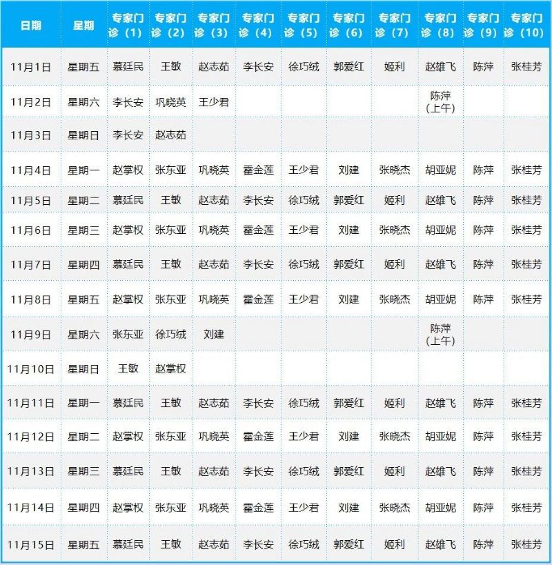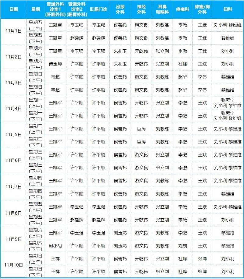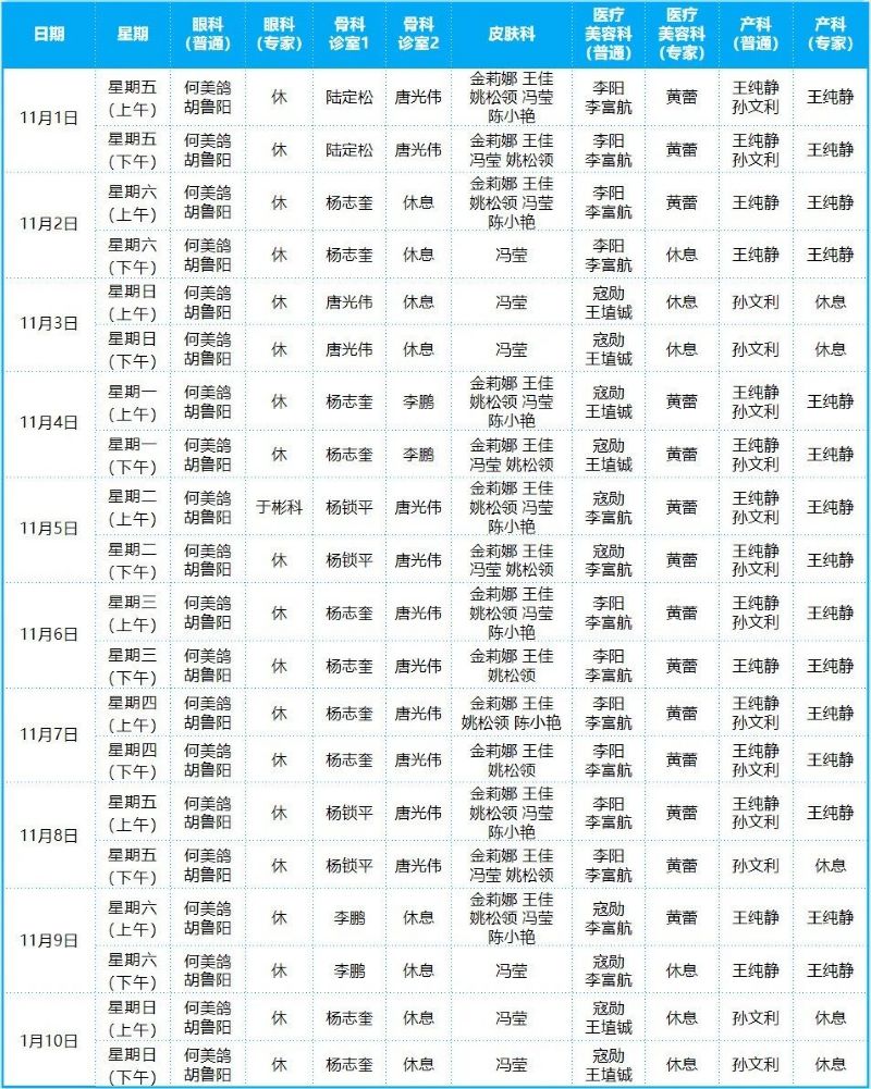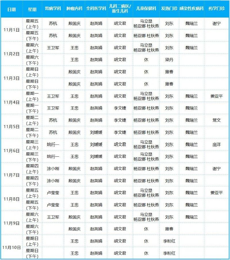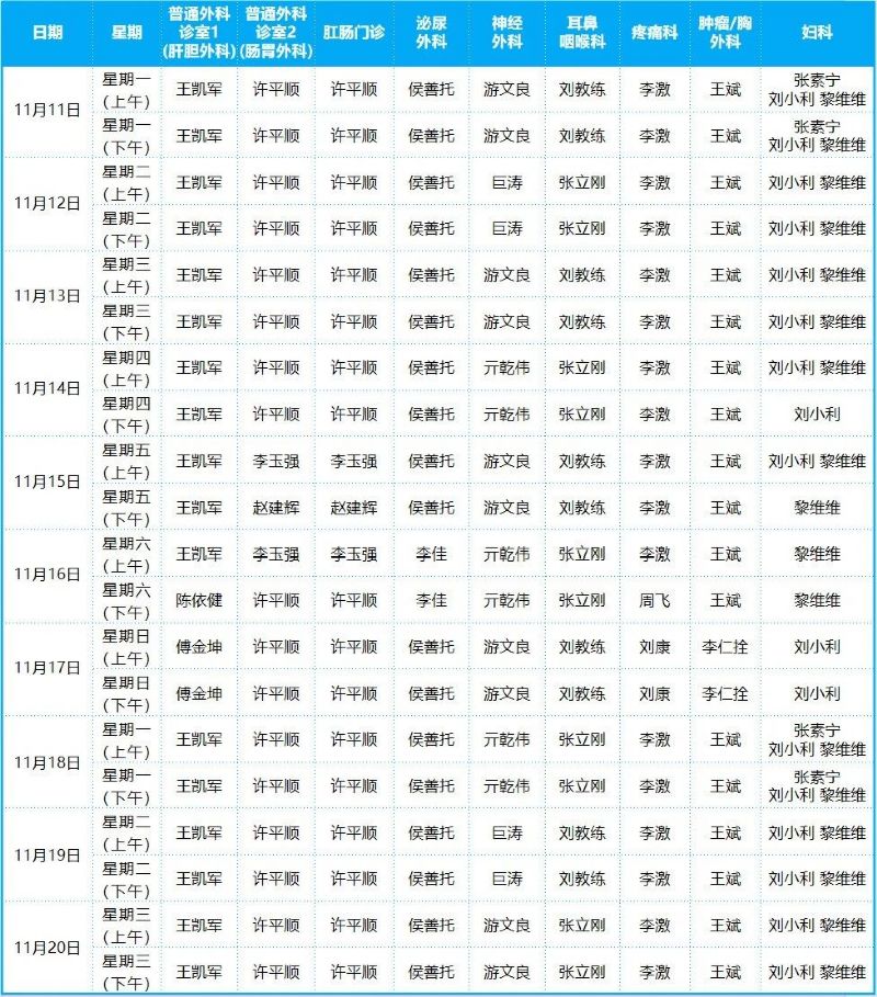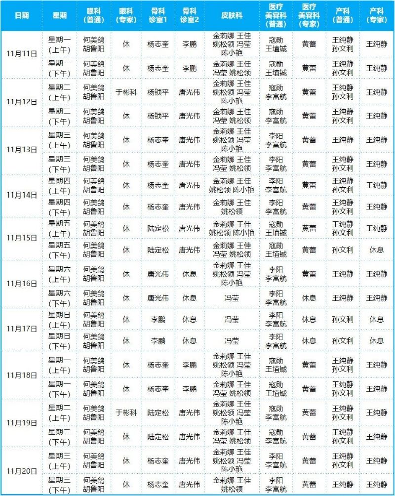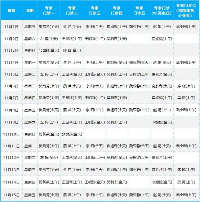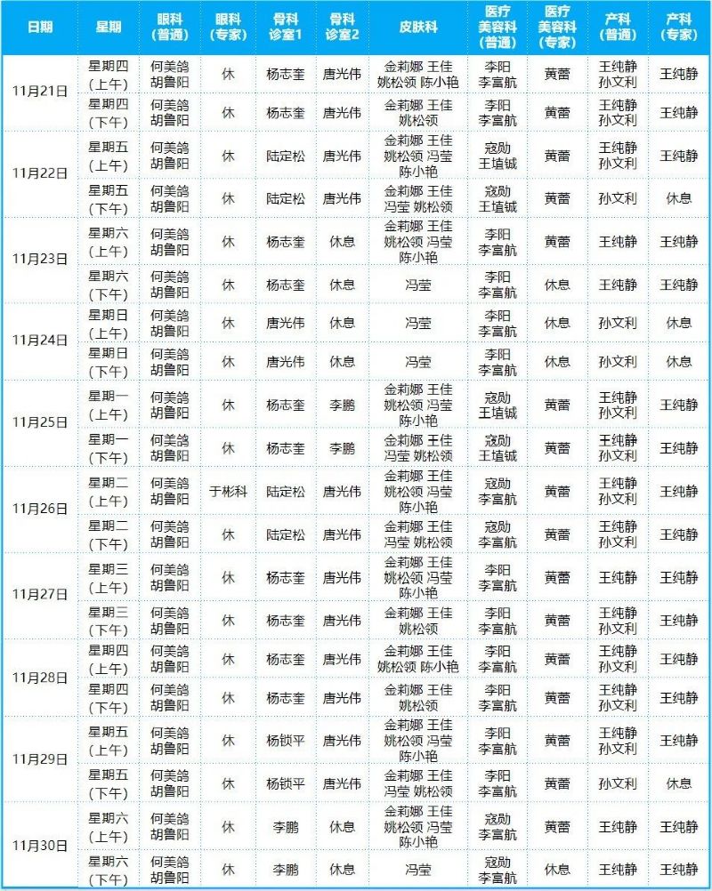 2024年11月份門診排班表