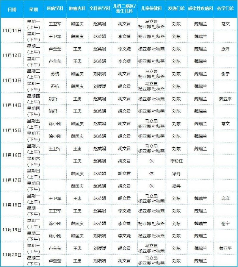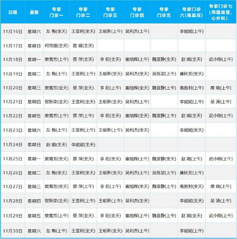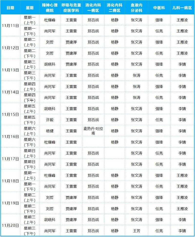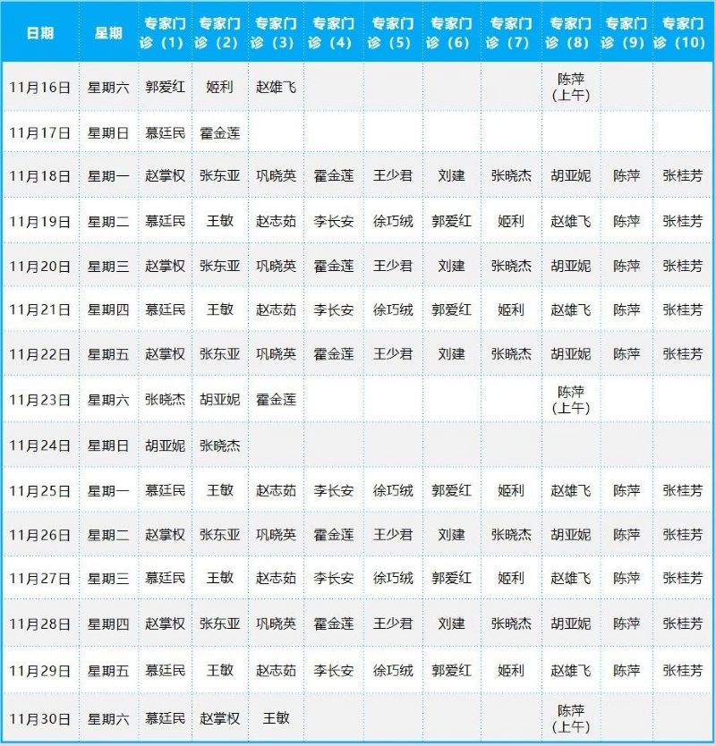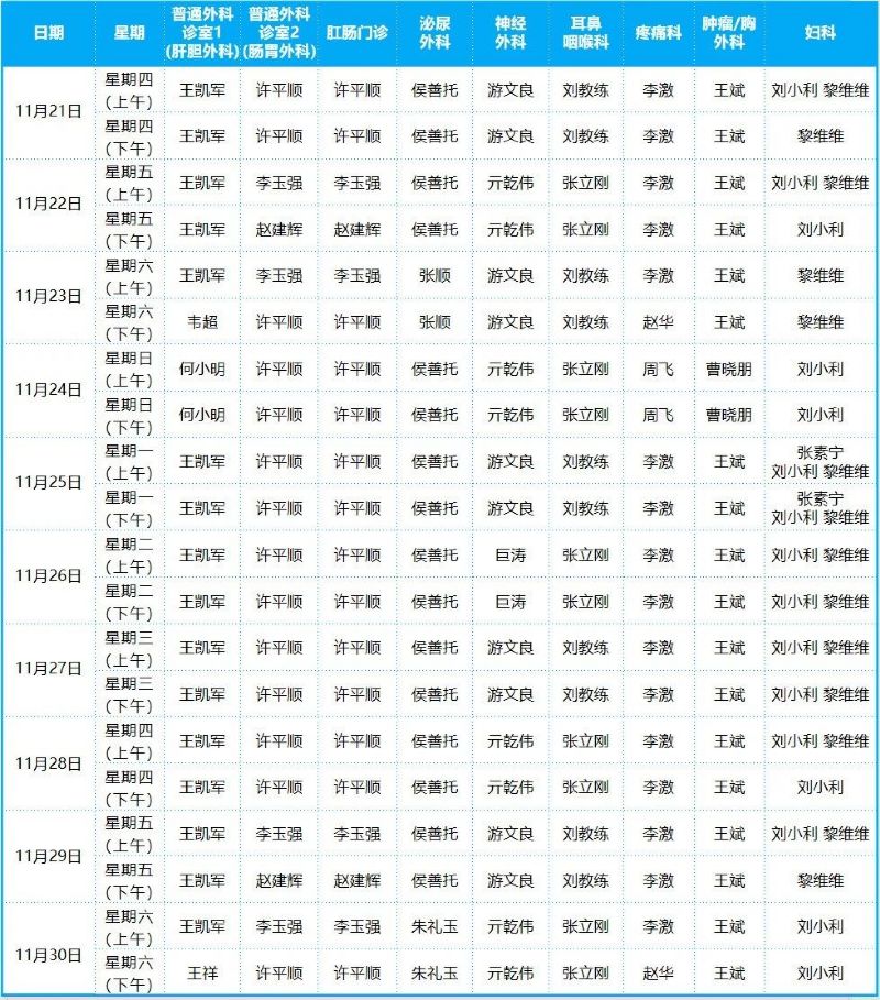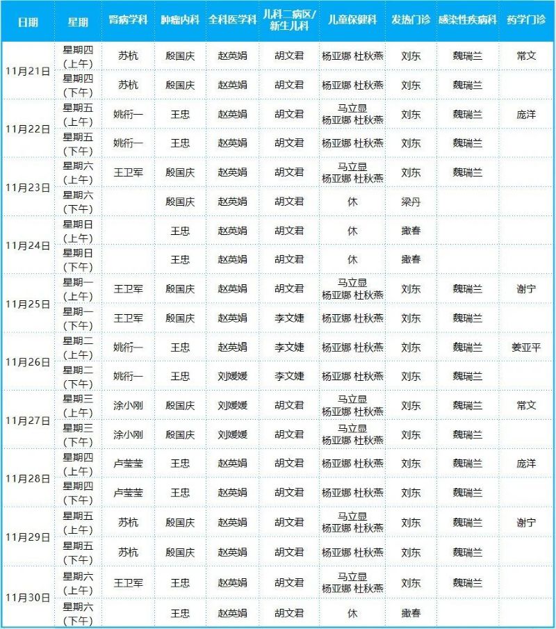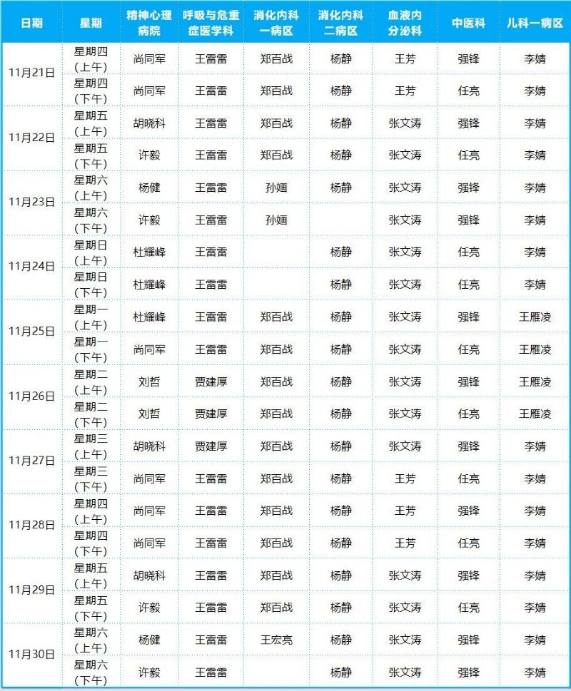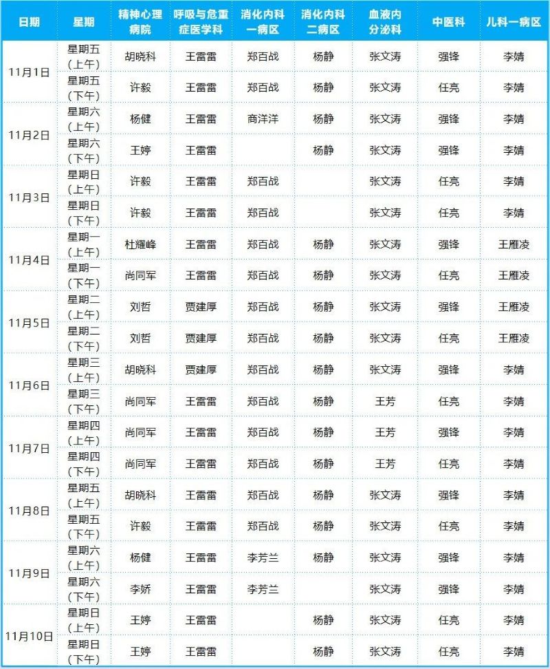 2024年11月份門診排班表