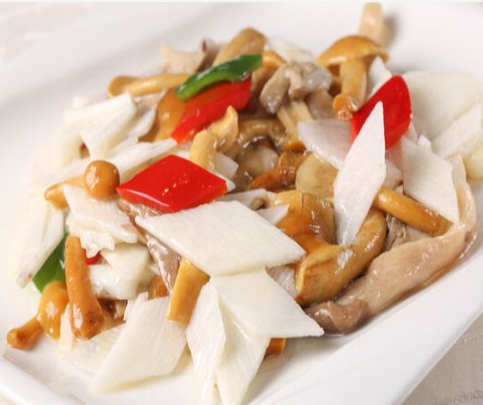 制作方法:先將蘑菇洗凈,再用熱水泡約10分鐘至變軟,泡菇水備用,同時將山藥洗凈去皮切小片,芹菜洗凈,也切成相同大小的段。炒鍋燒熱放人油,油熱后,依序加入蘑菇、山藥、芹菜炒熟,接著倒人泡菇水,待湯汁略收干后,用適量水淀粉勾芡,再加人適量醬油、鹽、味精調味即可。
