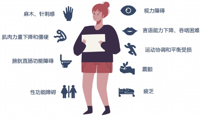 多發性硬化癥的癥狀千奇百怪,每個人都不一樣。有的患者可能會突然發現自己的手腳無力、麻木,就像被“凍住”了一樣;有的患者可能會出現視力模糊、復視,甚至看東西時眼睛會疼;還有些患者可能會感覺身體失去平衡,走路像踩在棉花上,搖搖晃晃。