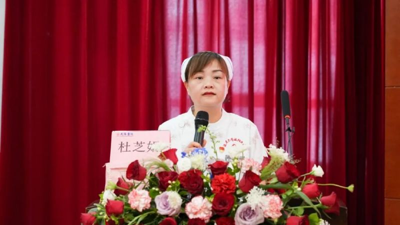我院優(yōu)秀護士代表王津發(fā)言:她用“溫度、敬畏、未來”為關(guān)鍵詞分享自己在工作中用敘事護理為路徑傳遞人文關(guān)懷,治愈心靈;在生死較量中堅守職業(yè)敬畏,守護生命尊嚴;于科技浪潮里精進專業(yè)、呼吁全院護士做有根的“提燈人”。優(yōu)秀護士長代表杜芝娟倡議全院護士始終堅守初心,深化"以患者為中心"理念,用專業(yè)與溫度守護生命;潛心精進技能,提升精準照護能力;攜手協(xié)同創(chuàng)新,以"全院一盤棋"的擔當推動醫(yī)院高質(zhì)量發(fā)展;賡續(xù)傳承奮進,在"三甲復(fù)審"中展現(xiàn)團結(jié)實干精神。