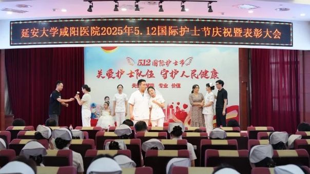 在第114個國際護士節(jié)到來之際,延安大學咸陽醫(yī)院于2025年5月8日下午在腦血管病院第三學術(shù)廳隆重舉辦主題為“關(guān)愛護士隊伍,守護人民健康”的護士節(jié)活動。精誠醫(yī)療集團董事局主席兼延安大學咸陽醫(yī)院董事長李衛(wèi)軍、延安大學咸陽醫(yī)院院長姚曉峰、常務(wù)副院長吳棟梁及院領(lǐng)導班子成員、各職能部門負責人、全院護士長及受表彰的優(yōu)秀護士、優(yōu)質(zhì)護理服務(wù)先進集體與個人、臨床護理優(yōu)秀教學集體及優(yōu)秀帶教老師,全院護士代表370余人參會,共同致敬新時代南丁格爾精神的踐行者。