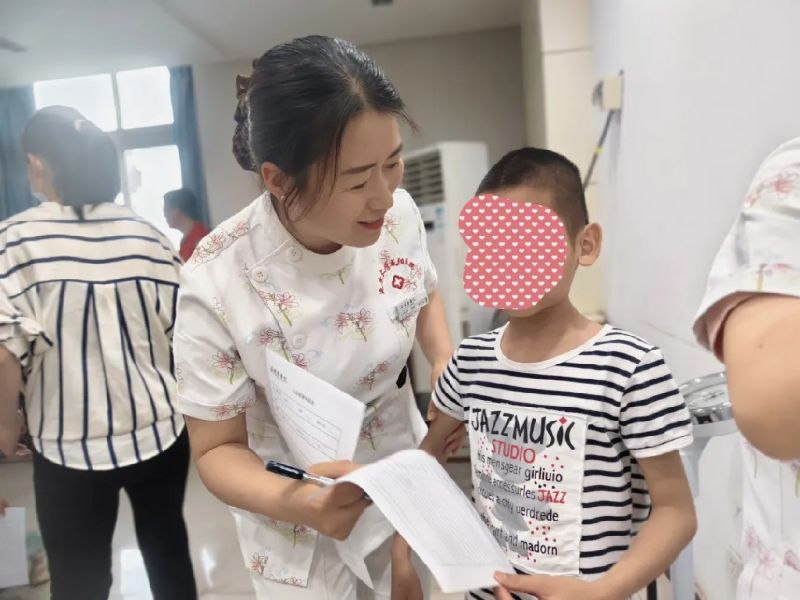 劉巧云護士長帶領(lǐng)醫(yī)護人員為孩子們進行了生長發(fā)育評估和視力測試,并對其口腔、語言、運動、社交能力等方面進行了專業(yè)評估,醫(yī)護人員詳細記錄并反饋結(jié)果,為每位兒童建立生長發(fā)育健康檔案,并向福利院工作人員提供專業(yè)的健康指導(dǎo)建議。