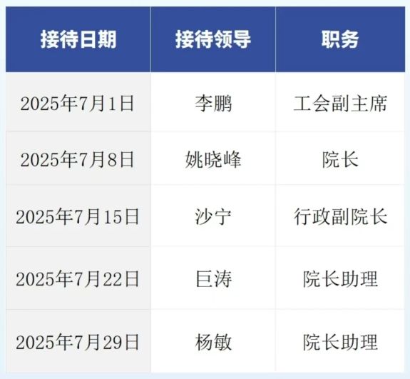 延安大學咸陽醫院7月份院領導接待日安排公告