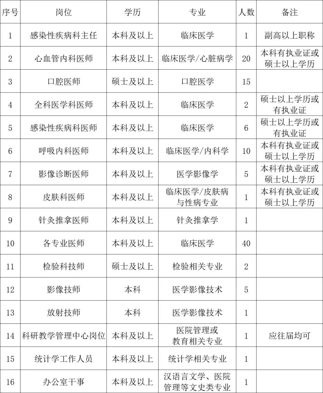 根據醫院發展需要,延安大學咸陽醫院現面向社會招聘各專業工作人員,具體要求如下: