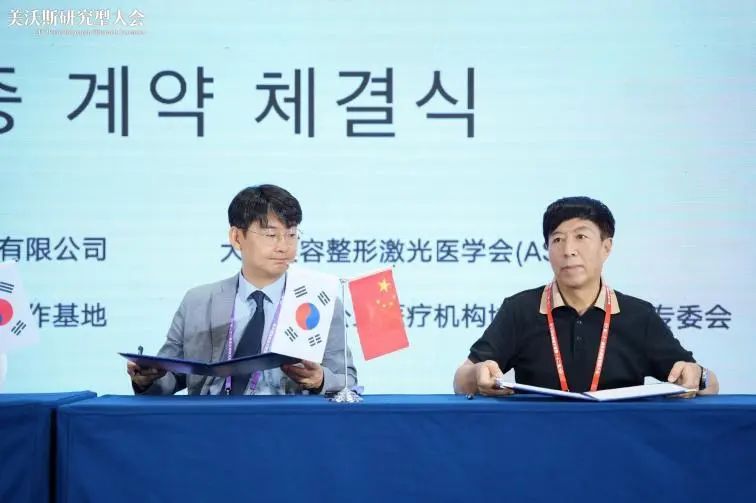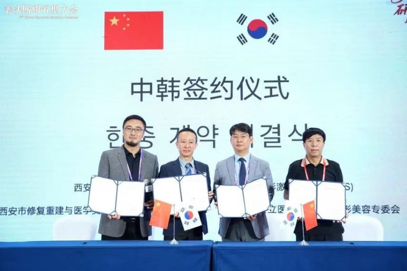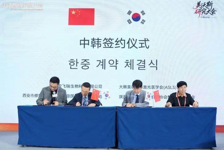 13位ASLS韓國專家就注射美容、激光美容、皮膚水光針以及皮膚再生療法方面做了精彩學術(shù)演講,會后同中方醫(yī)生進行了深入的交流,學者們對此次中韓醫(yī)美交流熱情滿滿。為滿足廣大醫(yī)美醫(yī)生的愿望,封興華教授作為陜西省非公立醫(yī)療機構(gòu)協(xié)會整形美容專委會代表與大韓美容整形激光醫(yī)學會(ASLS)、西安市修復重建與醫(yī)學美容國際科技合作基地、西安飛瑞生物科技有限公司(FEIZER)簽署了四方合作備忘錄,共同攜手,在發(fā)展中國醫(yī)療美容產(chǎn)業(yè),醫(yī)學人才培養(yǎng)教育和新技術(shù)培訓領(lǐng)域以及促進中國醫(yī)美國際交流方面進行合作,實現(xiàn)中韓醫(yī)美交流常態(tài)化。