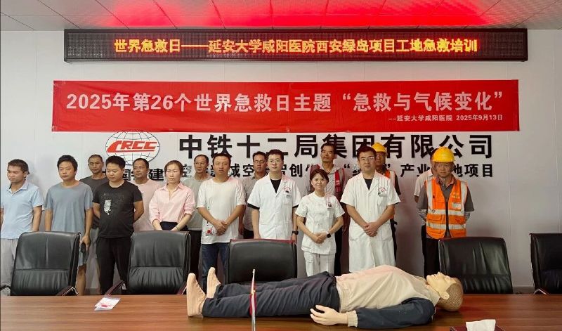 每年9月的第二個星期六是"世界急救日",旨在呼吁重視急救知識的普及,讓更多的人掌握急救技能,在事發現場挽救生命和降低傷害程度。在第26個世界急救日當天,我院急診科的醫護團隊選擇走出診室,將一堂生動又實用的"生命必修課"直接送到了中鐵十二局集團空港新城空天智創生態綠島項目部的工地上,為平日里奮戰在城市建設第一線的工友們筑牢了一道堅實的安全防線。