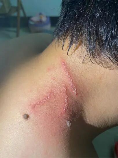 典型皮損形態(tài): 呈條狀、線狀或斑片狀的紅腫,就像被鞭子抽打過(guò)一樣,上面還可能出現(xiàn)密集的丘疹、水皰甚至膿皰。