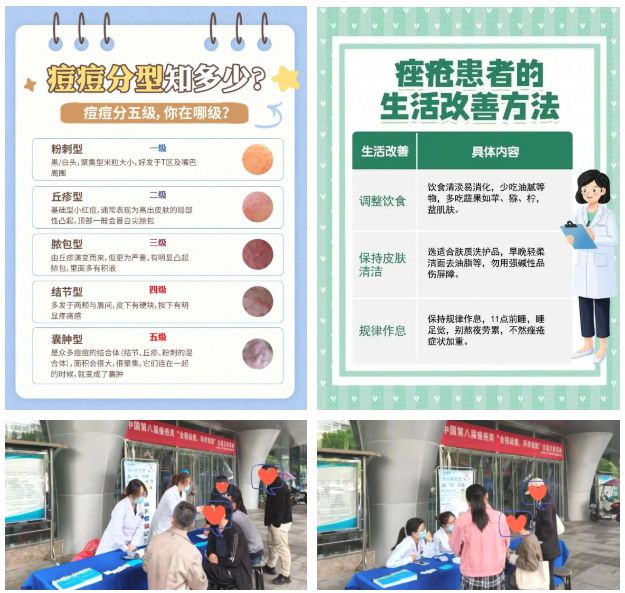 本周是由中國中西醫協同皮膚專科發展聯盟舉辦的“第八屆痤瘡防治科學普及周”活動。為加強公眾對皮膚健康的重視與認知,延安大學咸陽醫院皮膚科陳小艷主任團隊,在我院外科病院一樓舉辦第八屆中國痤瘡周“全程戰痘·科學愈膚”公益義診活動,為廣大痤瘡患者及咨詢人員進行現場免費診療。本屆中國痤瘡周以“全程戰痘,科學愈膚—聚焦痤瘡后遺癥防治”為主題,強調從預防、治療到修復的全流程管理。