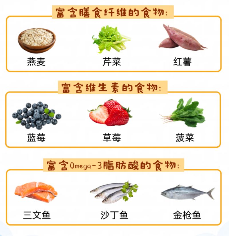 2.好好吃:給血液刮刮油控鹽控糖控油炸食品,每日攝鹽<5g,多吃藍莓、燕麥、深海魚等富含膳食纖維的食物。每日飲水1500-2000ml(心腎疾病者遵醫囑進行出入量管理)。晚飯避免過飽,減少夜間血液粘稠度增高的風險。