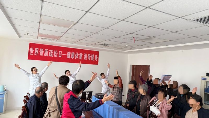 最后,在輕松愉悅的音樂伴奏下,活動進入了核心環(huán)節(jié)——健骨操帶教。骨科科普聯(lián)絡(luò)員崔睿睿、魚瑩、李文靜專業(yè)團隊登臺,一步步分解、演示專為增強骨密度設(shè)計的健骨操。現(xiàn)場氣氛熱烈而溫馨,在她們的耐心指導(dǎo)和鼓勵下,現(xiàn)場的與會人員學(xué)得認真,做得起勁。從靈活肩頸的“風(fēng)吹麥浪”,到穩(wěn)固重心的“金雞獨立”,再到強化下肢的“腳踏實地”,每一個動作都旨在刺激骨骼、增強肌力、改善平衡能力,從而有效預(yù)防跌倒和骨折。