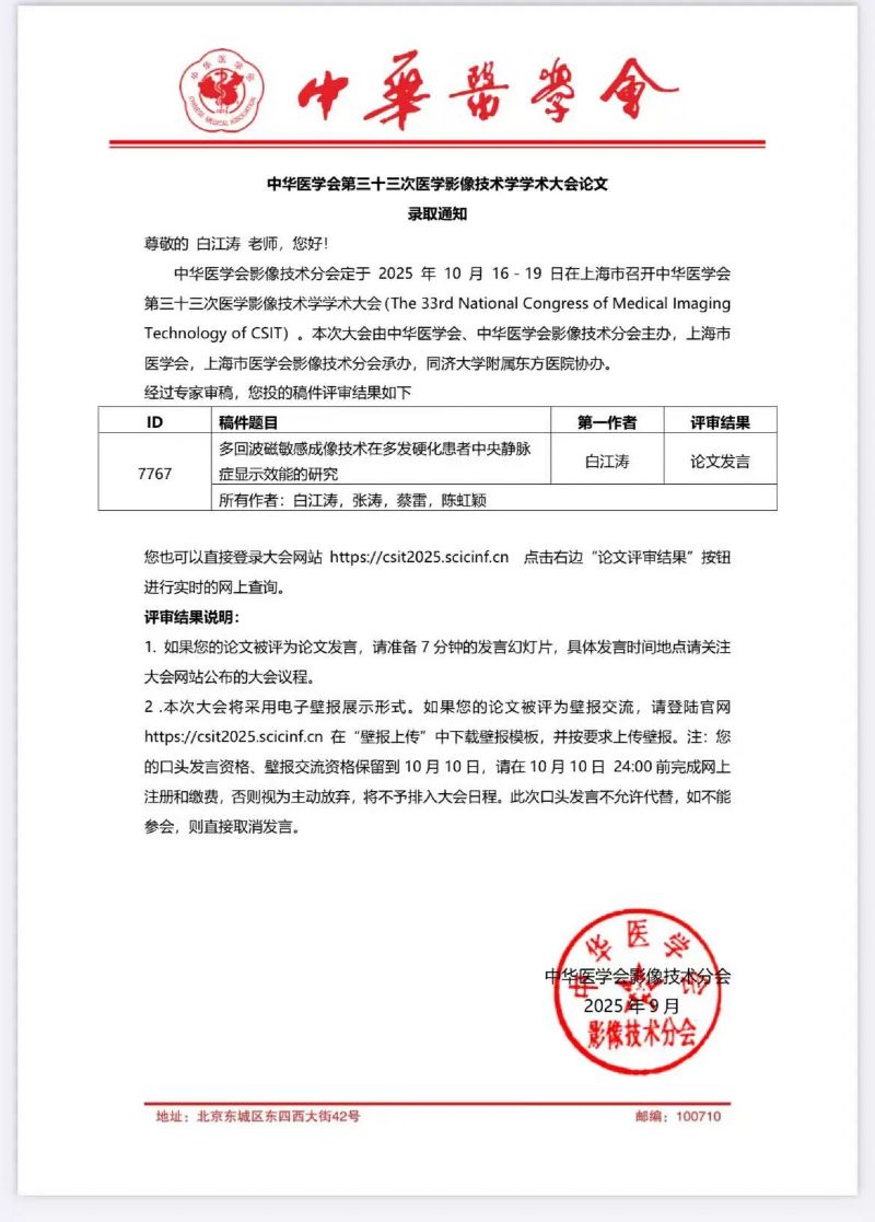 此次上海之行,不僅是對我院CT磁共振室學術成果的檢閱,更是一場專業視野的升華與心靈的浸潤。此次參會,是對我院既往工作的肯定,更是我們邁向新起點的契機。