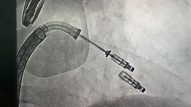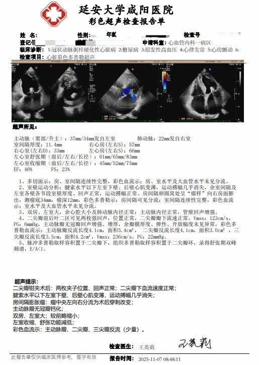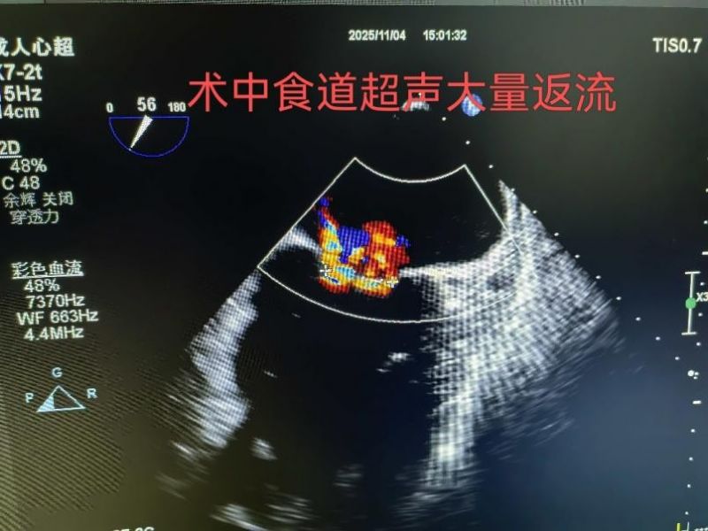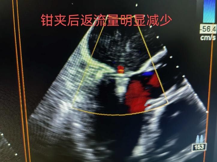 手術于11月4日下午進行,通過股靜脈穿刺送入夾合器,在食道超聲實時引導下,精準植入2枚瓣膜夾修復二尖瓣。整個過程歷時約2小時,術中出血量僅50ml。術后次日,患者即可下床活動,復查顯示EF提升至46%,二尖瓣返流面積縮小至3.0cm2,左心房縮小至66mm,胸悶、氣短癥狀明顯緩解。