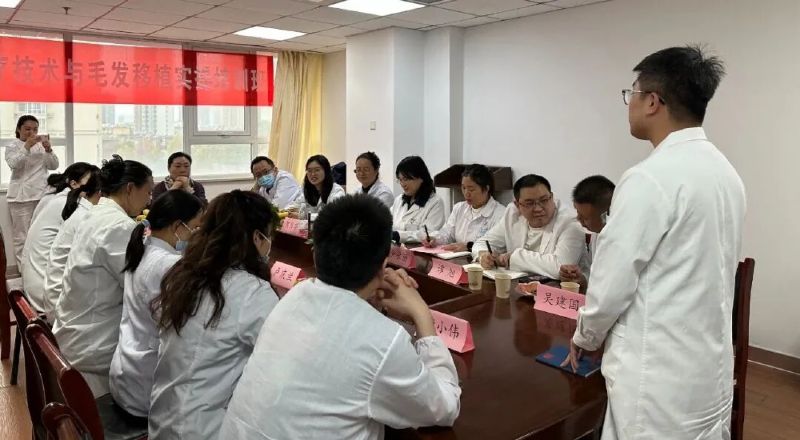延安大學(xué)咸陽醫(yī)院皮膚科診療團(tuán)隊進(jìn)行了《頭皮美塑療法技術(shù)操作規(guī)范專家共識解讀》《休止期脫發(fā)的診斷與治療》《激光療法在脫發(fā)中的應(yīng)用》《中醫(yī)外治技術(shù)在毛發(fā)疾病中的應(yīng)用》《毛發(fā)專診護(hù)理團(tuán)隊的建設(shè)與管理》《毛發(fā)移植術(shù)操作要點及術(shù)后并發(fā)癥處理》等課程的分享,為毛發(fā)專診建設(shè)提供了全方位的技術(shù)指導(dǎo)。