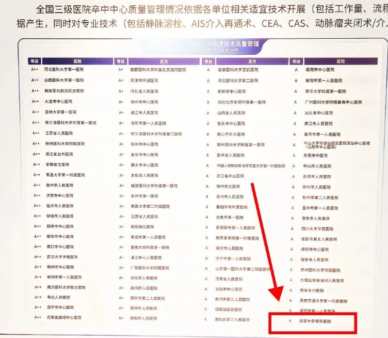 2025年11月,在“中國腦卒中大會”這一行業權威評審平臺上,延安大學咸陽醫院卒中中心再次交出亮眼成績:在三級卒中中心綜合、靜脈溶栓、頸內動脈支架及AIS介入再通四項關鍵評審中,均獲得“A+”或“A”的高等級評價。