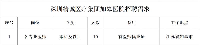 延安大學咸陽醫院、眉山心腦血管病醫院、深圳精誠醫療集團如皋醫院、樂山老年病醫院——四家醫院聯合招聘,誠邀優秀人才加入!
